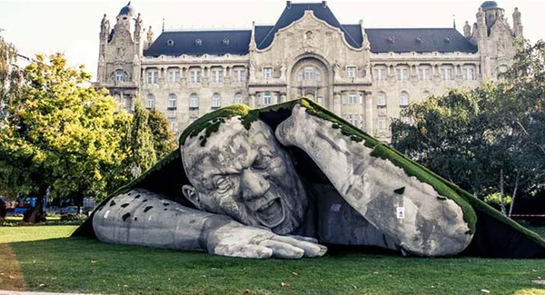 A Budapest, in piazza Széchenyi, l'artista Ervin Loranth Herve ha creato nel 2014 "Feltepve" (dall'ungherese "strappato"), una gigantesca statua temporanea che mostrava un uomo che cercava di emergere dal terreno. L'opera era realizzata in polistirene e aveva tonalità grigie e beige per integrarsi nell'ambiente urbano.